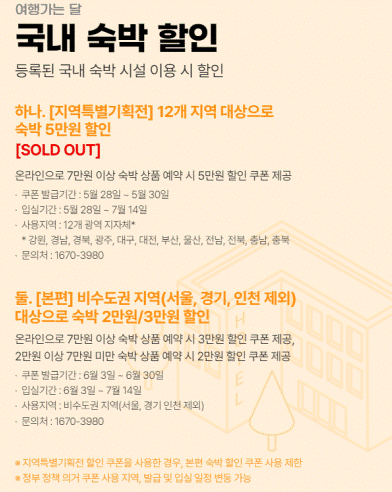 지역 특별기획전 할인 쿠폰을 사용한 경우 본편 숙박 할인 쿠폰 사용 제한이 있고 정부정책에 의거 쿠폰 사용 지역, 발급 및 입실 일정은 변동 가능 합니다. 6월이 여행 가기 참 좋은 달인 것 같습니다. 이런 시기에 이런 할인 행사가 있다고 하니 참고해서 여행 계획을 세우는 것도 도움이 될 것 같습니다.
