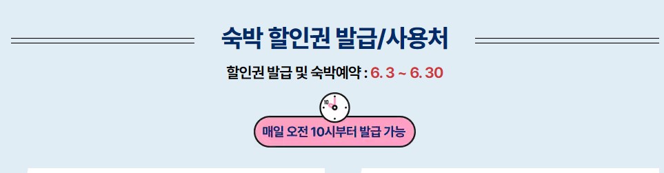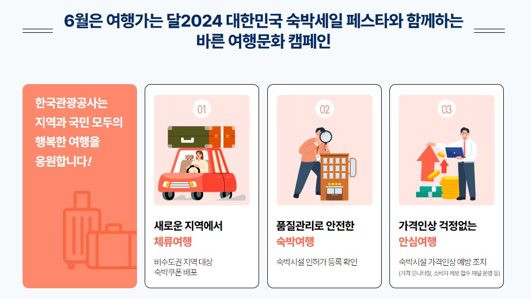 국내여행 활성화와 지역경제 활성화를 위하여 문체부와 한국관광공사가 지자체와 관광업계와 함께 추진하는 캠페인 여행 가는 달에서 6월 3일부터 6월 30 일일까지 한 달 동안 결재 금액에 따라 숙박할 일을 해주고 있습니다.