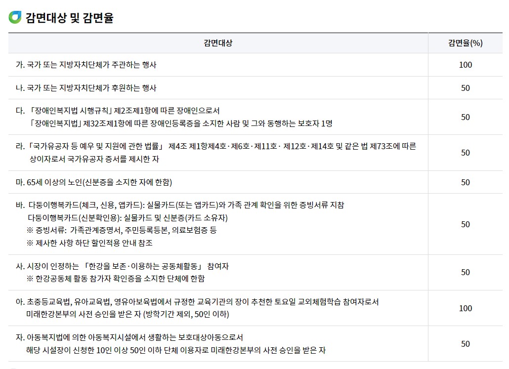 ****** 주차 요금은 한강 공원 주차장 이용요금을 적용